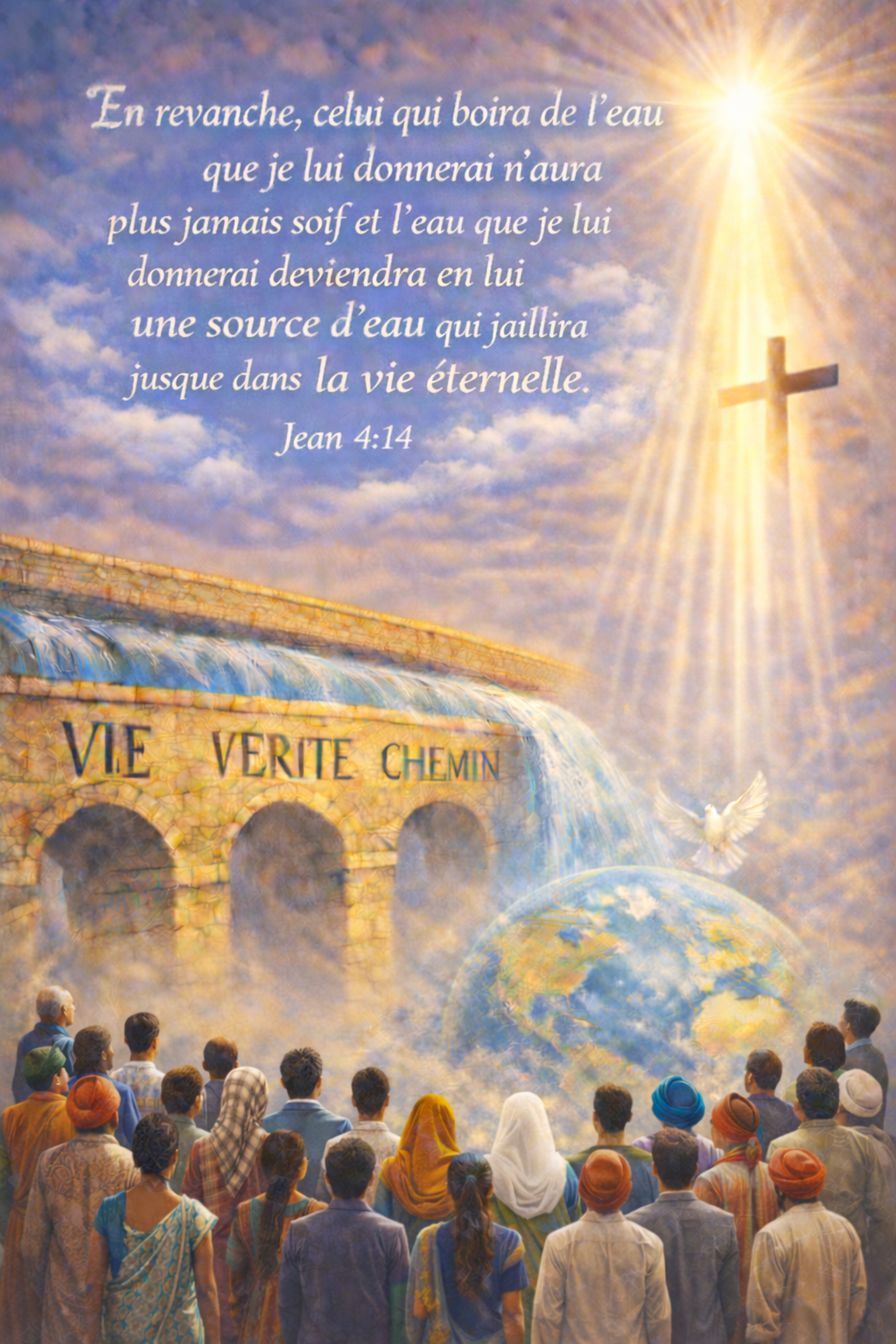 "En revanche, celui qui boira de l'eau que je lui donnerai n'aura plus jamais soif et l'eau que je lui donnerai deviendra en lui une source d'eau qui jaillira jusque dans la vie éternelle" Jean 4.14